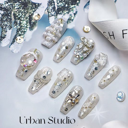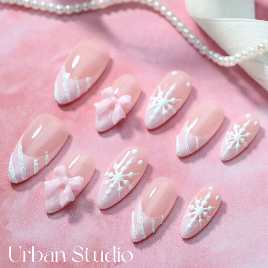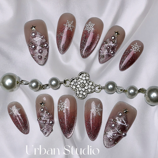 Our Christmas Press-On Nail Collection features holiday-inspired designs including red Christmas nails, evergreen nails, snowflake nails, winter press-on nails, and festive 3D nail art.